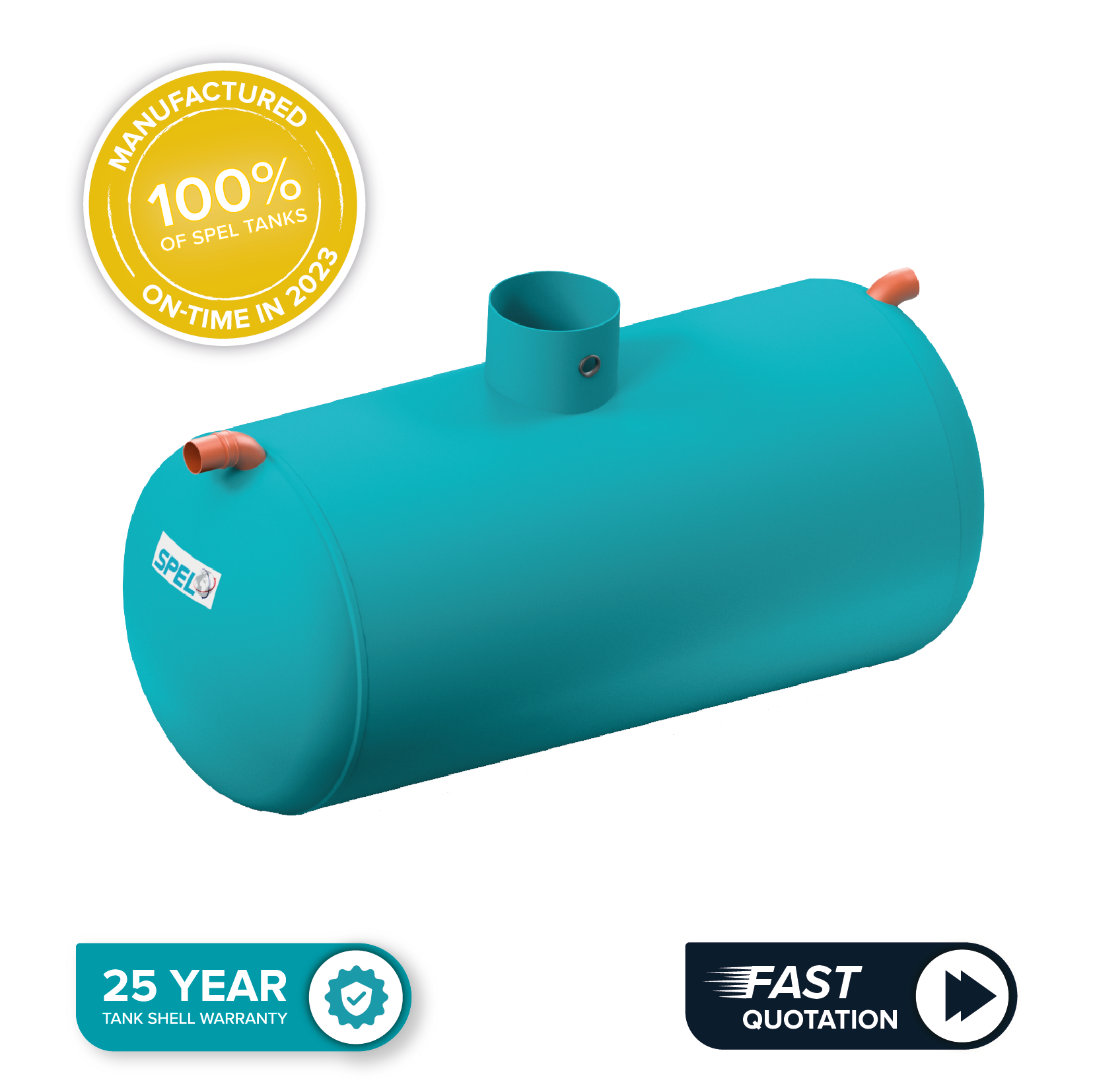 • So far in 2023 (up to the end of October 2023) SPEL have manufactured 100% of tanks on time so you can be confident you will get your tank on time with no delays or surprises!